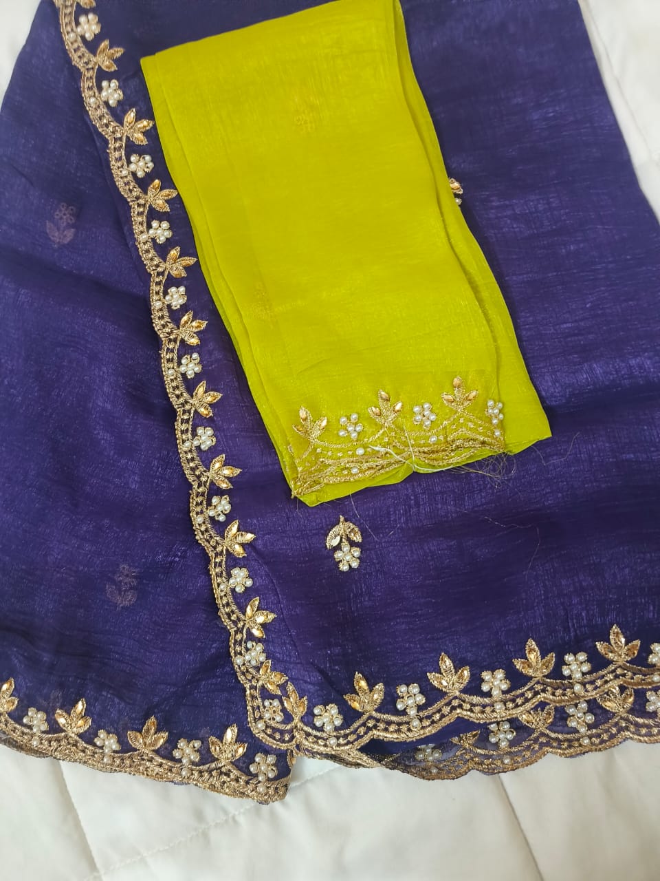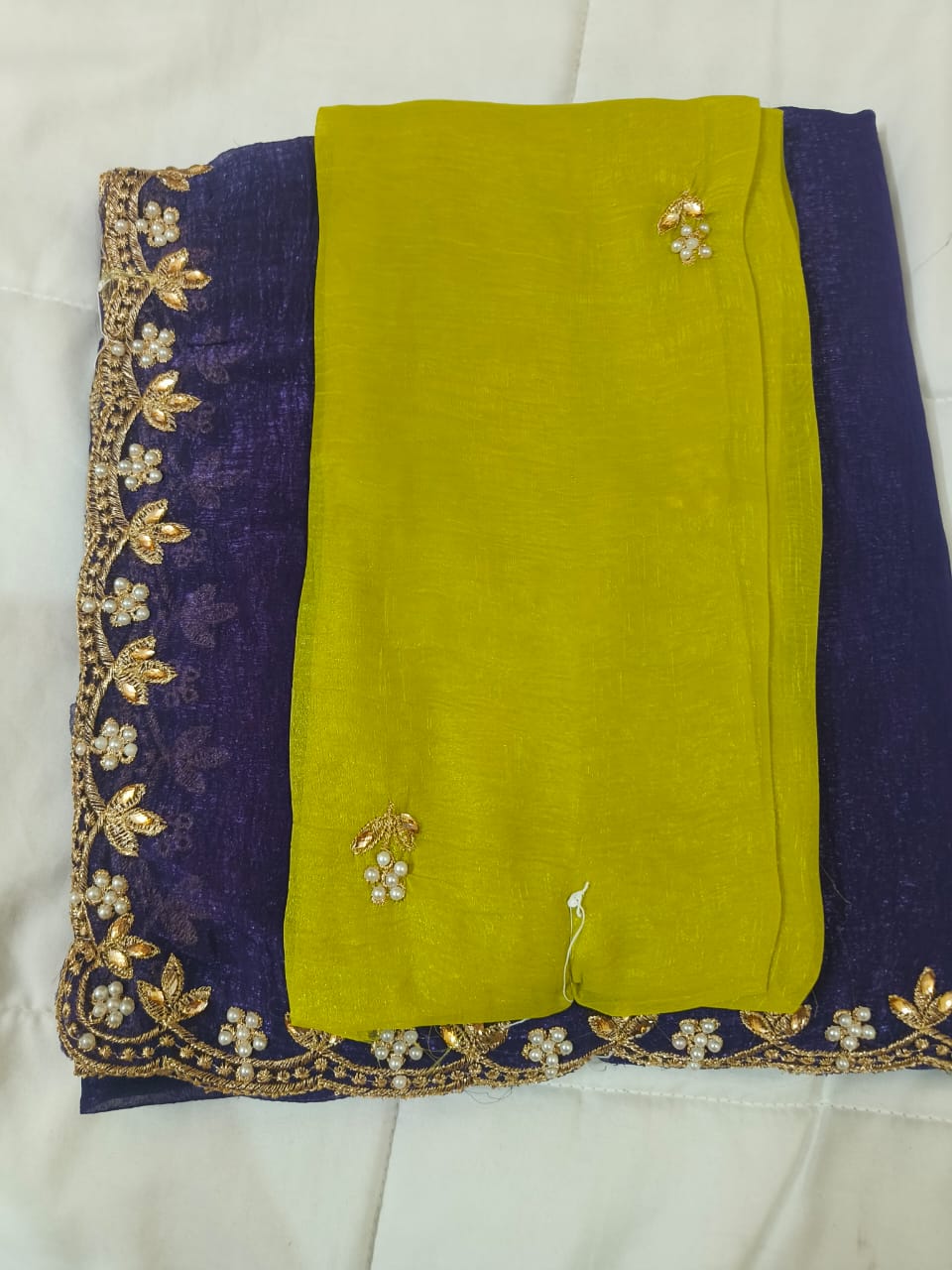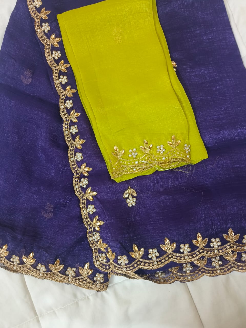 Step into style with this Fancy Trending Sari, crafted to capture every gaze effortlessly.